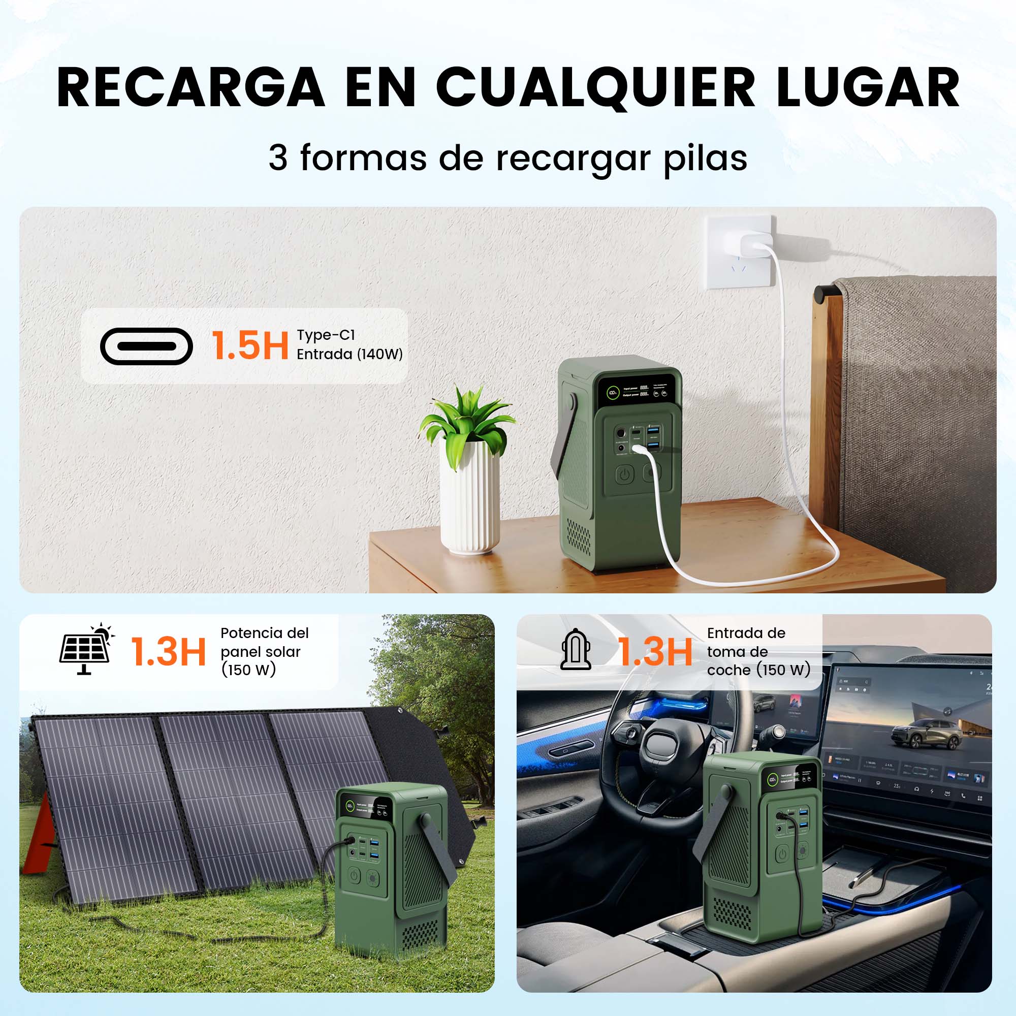 El Ctolity AP200L incluye 2 puertos USB-C de alta velocidad (140W y 22.5W), 2 USB-A (18W) y 1 salida DC (12V/120W). Carga laptops, teléfonos, neveras portátiles y equipo de exterior mientras te desplazas.