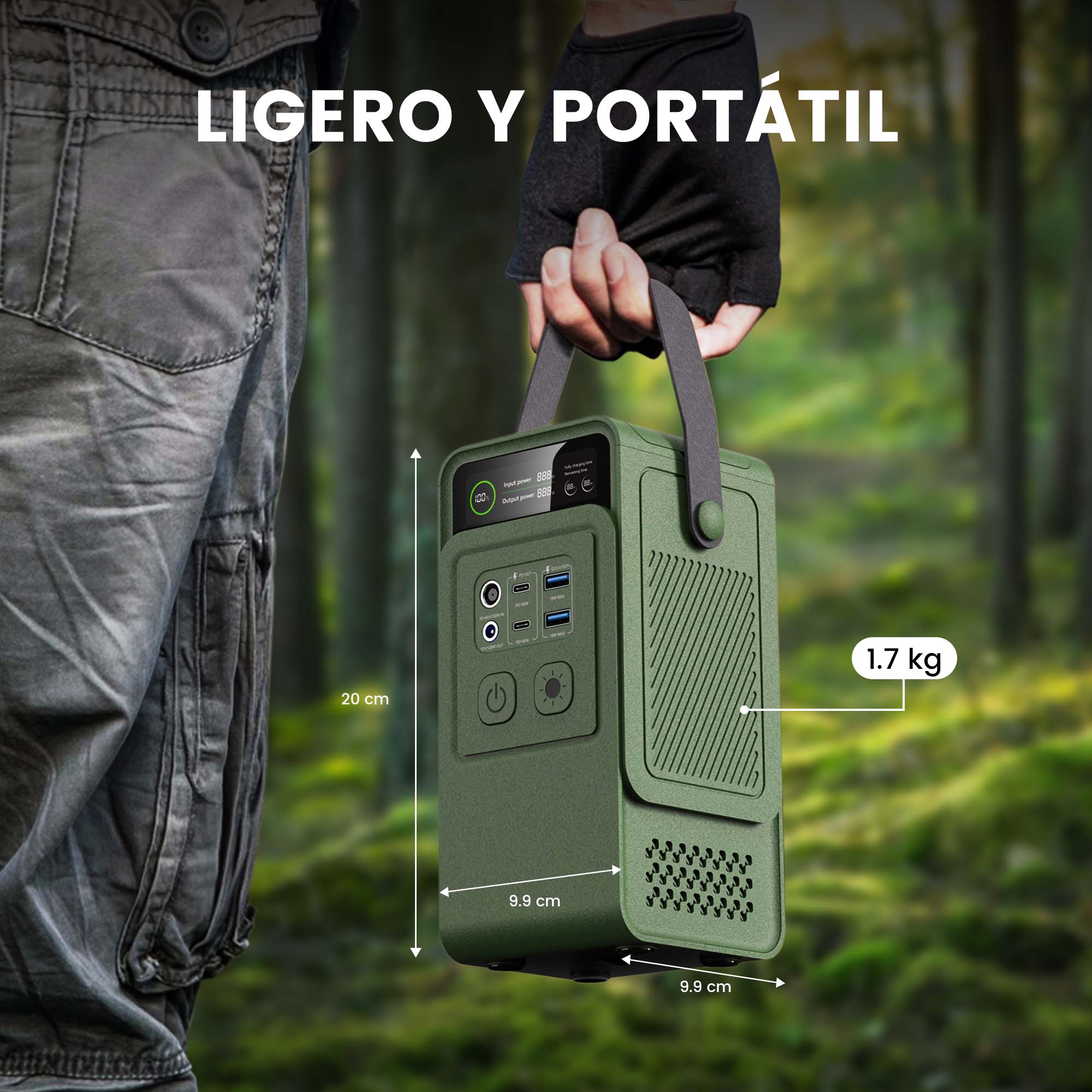 El Ctolity AP200L cuenta con puertos USB-C de 140W, USB-A y DC para cargar varios dispositivos. Ligero y fácil de transportar. Compatible con carga solar, de coche y de pared.