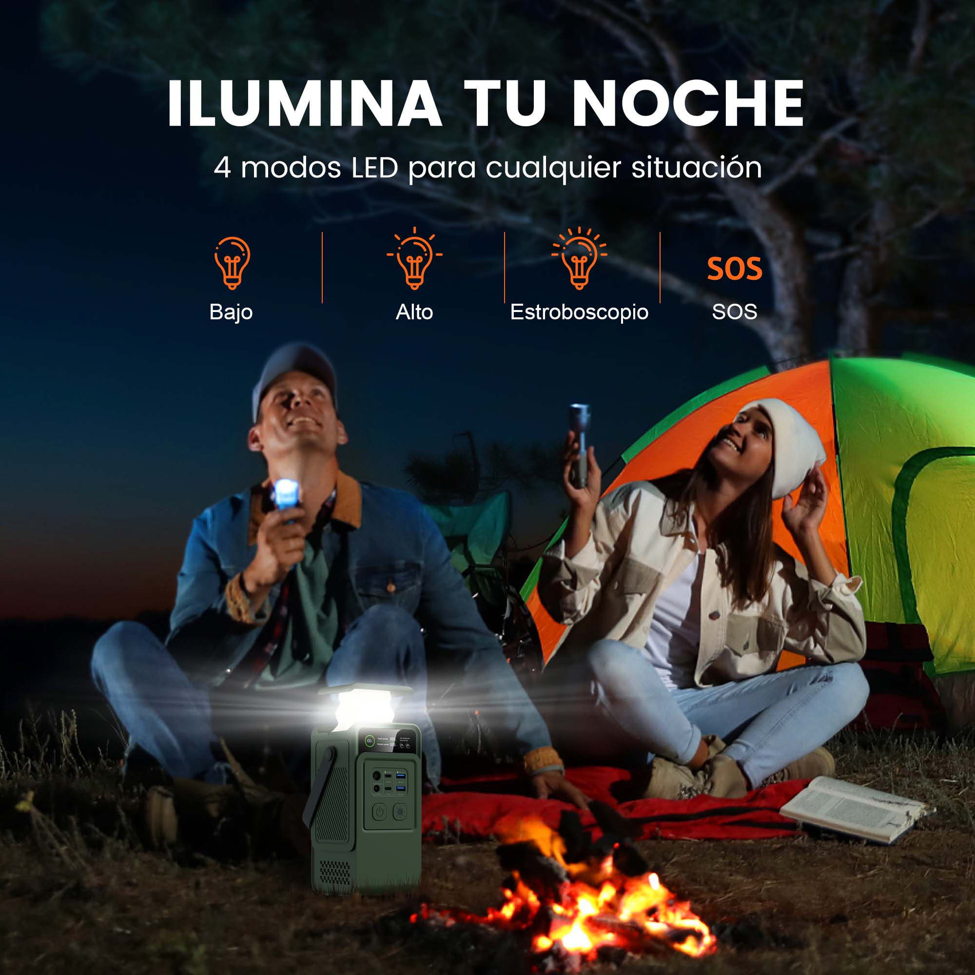 El Ctolity AP200L incluye una luz LED plegable con brillo y ángulos ajustables. Ofrece modos de flash de emergencia y SOS para mayor seguridad. Ideal para apagones y uso en exteriores.