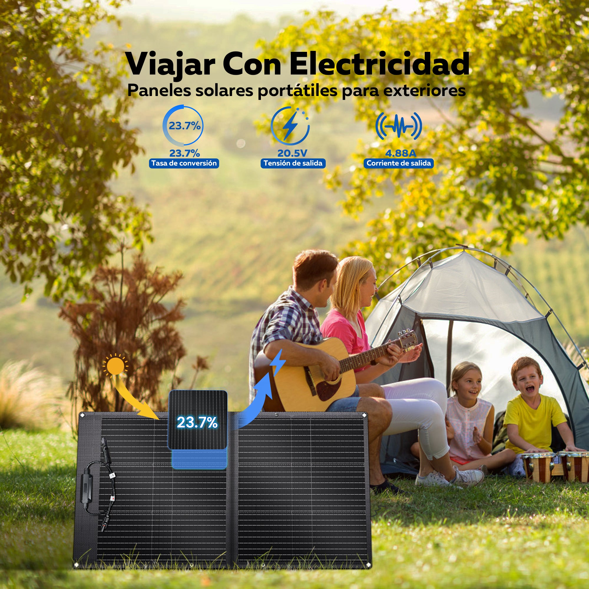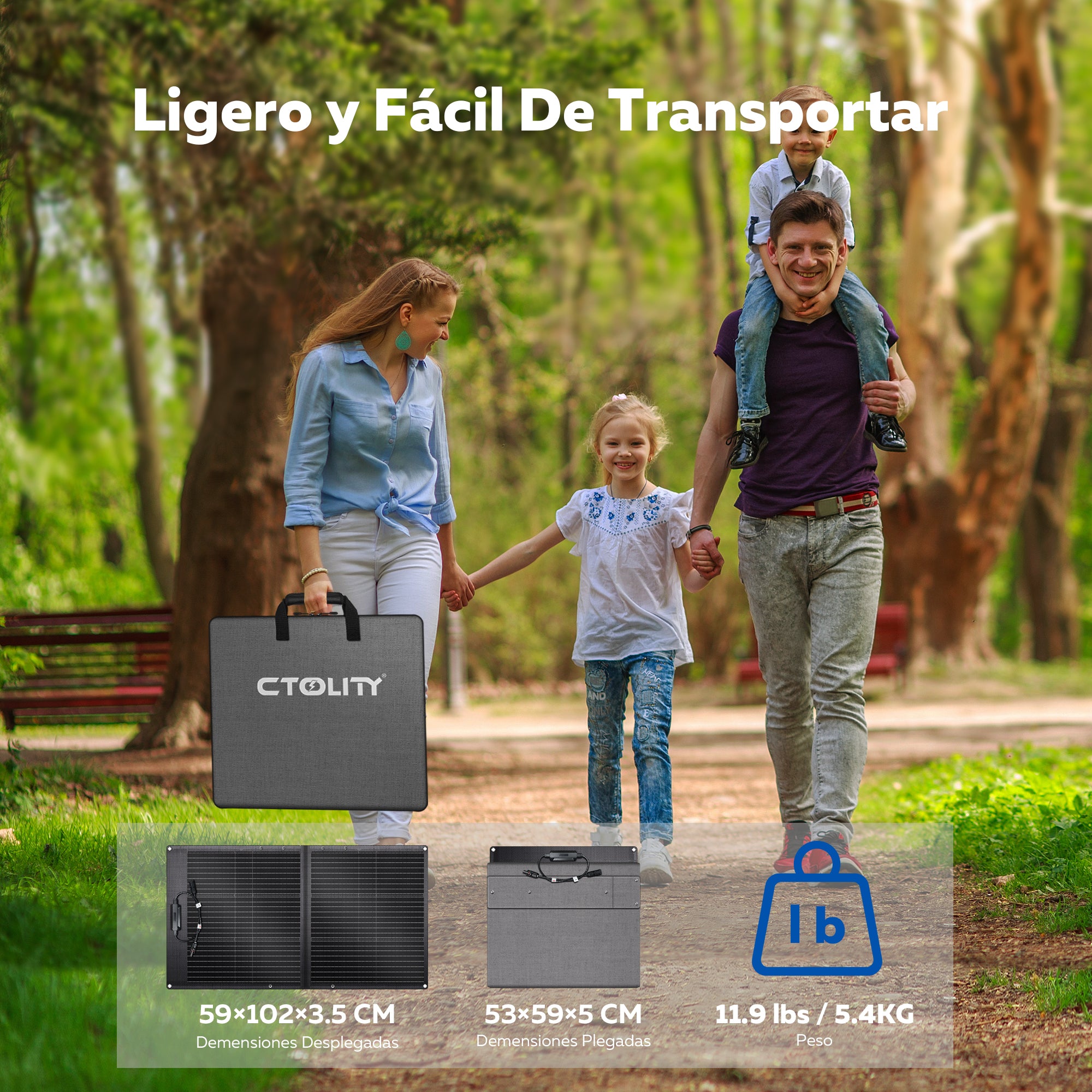 Impulsa tus aventuras con el Panel Solar Portátil CTOLITY de 100 W. Diseñado para acampar, ir a la playa, viajar por carretera y vivir sin conexión a la red eléctrica, ofrece una alta eficiencia del 23,7 %, compatibilidad con USB y CC, y resistencia al agua. Mantén tus dispositivos cargados donde y cuando quieras.